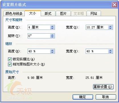 图片插入后,如果大小位置不合适,在图片上点右击键,从弹出菜单里点“设置图片格式”,弹出以下窗口,根据需要调整图片的大小及版式。